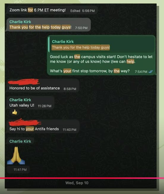 Text Messages that implicate IsraHell in the Charlie Kirk public execution and coverup