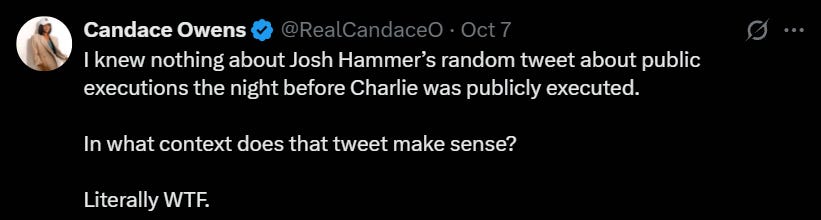 FACT: Josh Hammer randomly dug up a 12-year old Trump tweet about public executions the night before Charlie was assassinated.